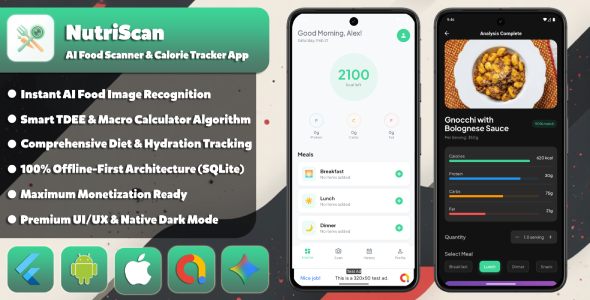 AI Food Scanner & Calorie Tracker App Template (Flutter) The Ultimate AI-Powered Diet & Nutrition Tracking Solution for iOS and Android NutriScan is a highly advanced, premium Flutter application template designed to disrupt the health and fitness market. Powered by Google’s...