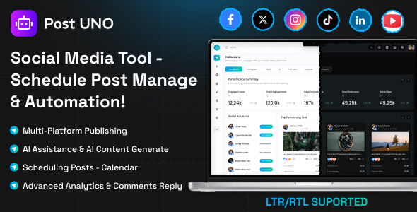 Overview PostUno is an AI-driven social media management and automation tool designed for businesses, agencies, and creators. Manage campaigns, schedule posts, and analyze performance across multiple platforms—all from one intuitive dashboard. Key Features Campaign & Calendar Planner Use a visual calendar...