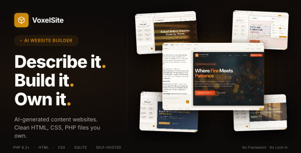 AI Website Generator — Describe It. Build It. Own It. VoxelSite generates production-ready content websites from a text description. Describe a business — a bakery, a law firm, a design studio — and VoxelSite builds a complete, multi-page website with Tailwind...